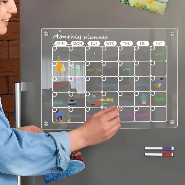 Papirnati planeri potroše se nakon mjesec dana i idu ravno u smeće. Prozirna akrilna površina potpuno se čisti u sekundi priloženom krpom – bez duhova, bez mrlja, bez ostataka. Površina je otporna na ogrebotine i mrlje, tako da ostaje kristalno čista nakon stotina brisanja.