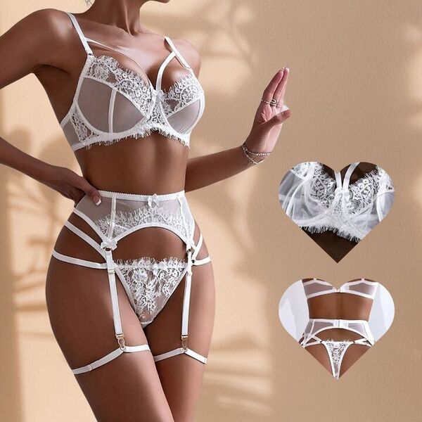 1 WHISPER set (čipkasti grudnjak + čipkasta podvezica + čipkaste tange)