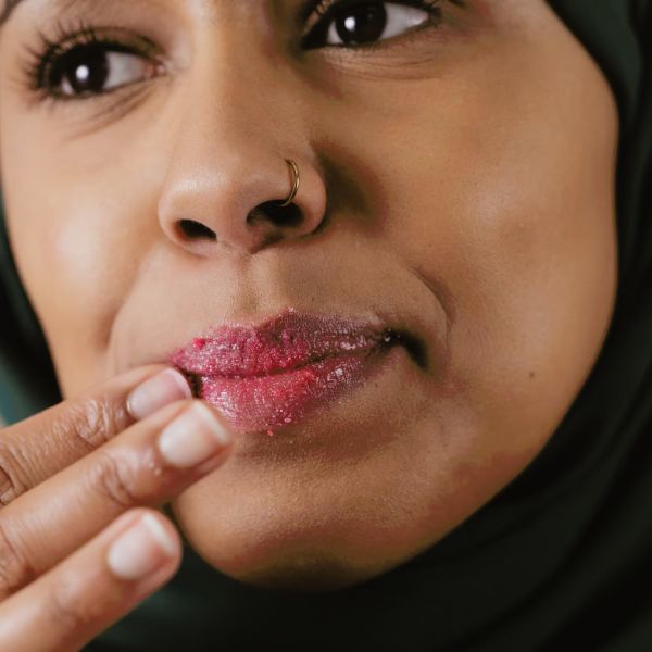 ✅ Navlažite usne toplom vodom kako biste ih pripremili za piling.